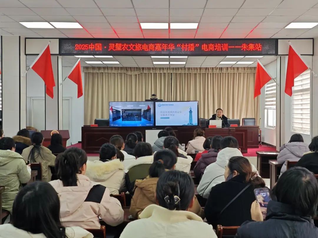 中安在线、中安新闻客户端讯 2025年1月14日上午,2025中国·灵璧农文旅电商嘉年华“村播”电商培训班在朱集镇政府会议室召开,全镇13个行政村的年轻骨干参加本次培训。